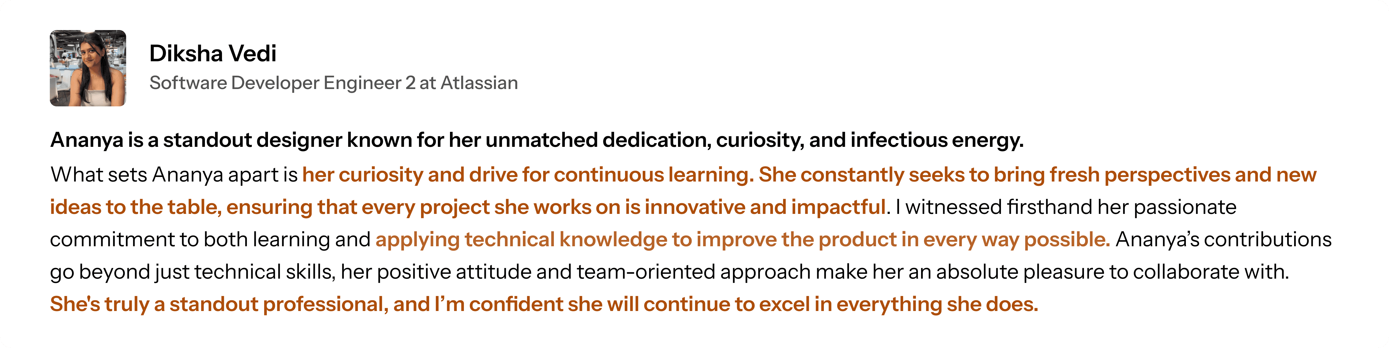 Honest reflections from people I’ve partnered with across product, design, and engineering.