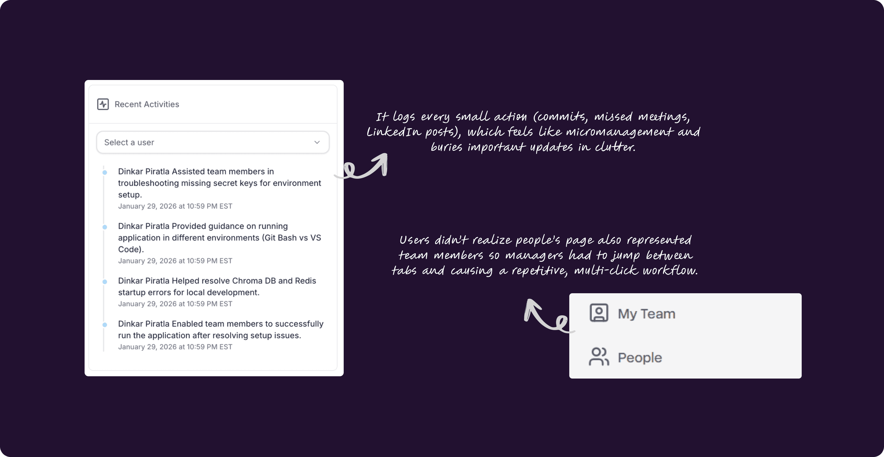This was a human-centered problem. Solving this wasn’t just about improving a dashboard it was about restoring trust, clarity in a system that directly impacts people’s work lives and evaluations.