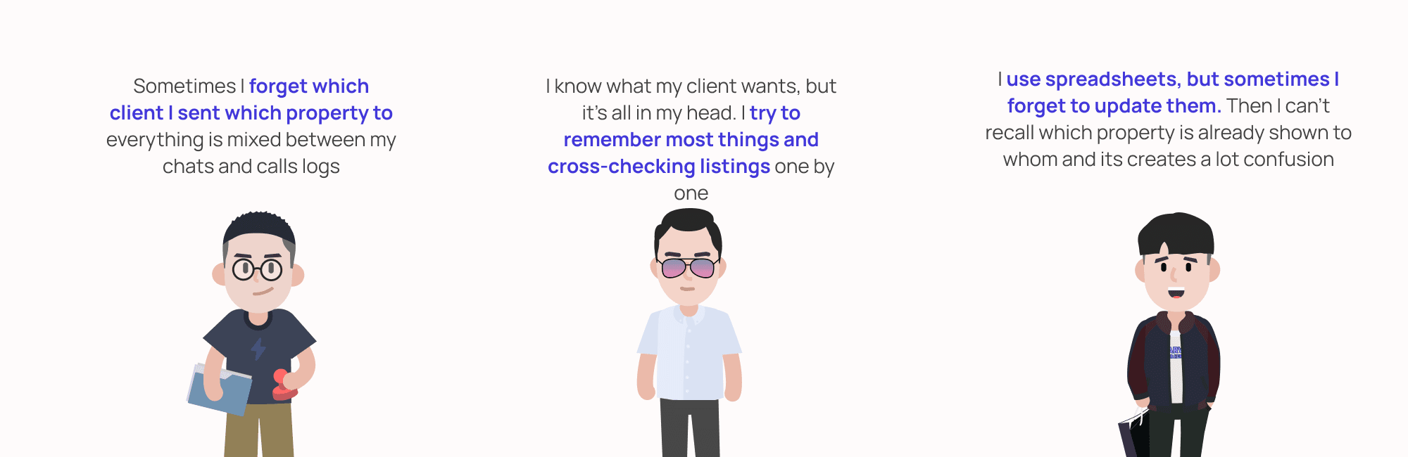 " Sometimes I forget which client I sent which property to everything is mixed between chats and calls "