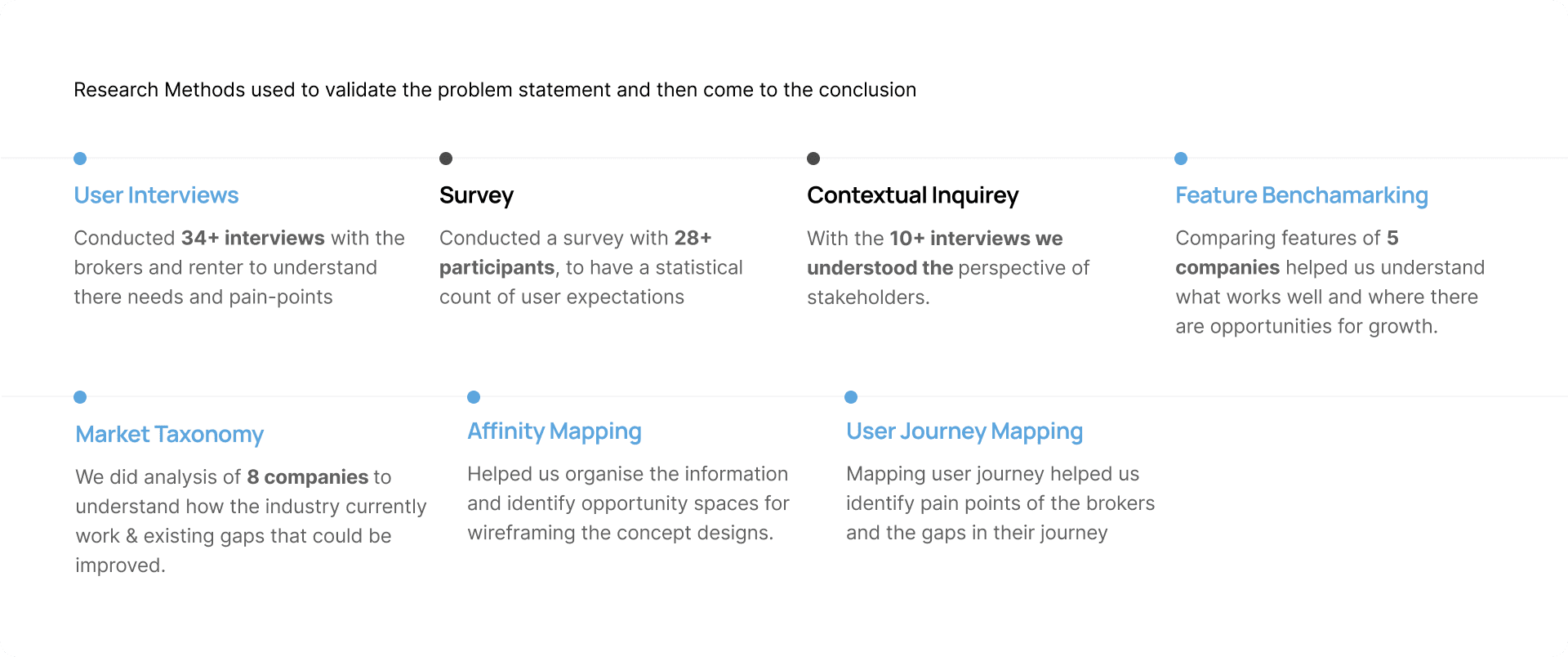 Through these user interviews, we discovered that brokers sit at the center of this unorganized ecosystem they act as a connectors between property owners, renters, and platforms yet lack the digital tools to manage their workflows efficiently. This insight helped us focus our solution on streamlining and structuring broker operations, with the belief that empowering brokers can uplift the entire real estate interaction funnel.