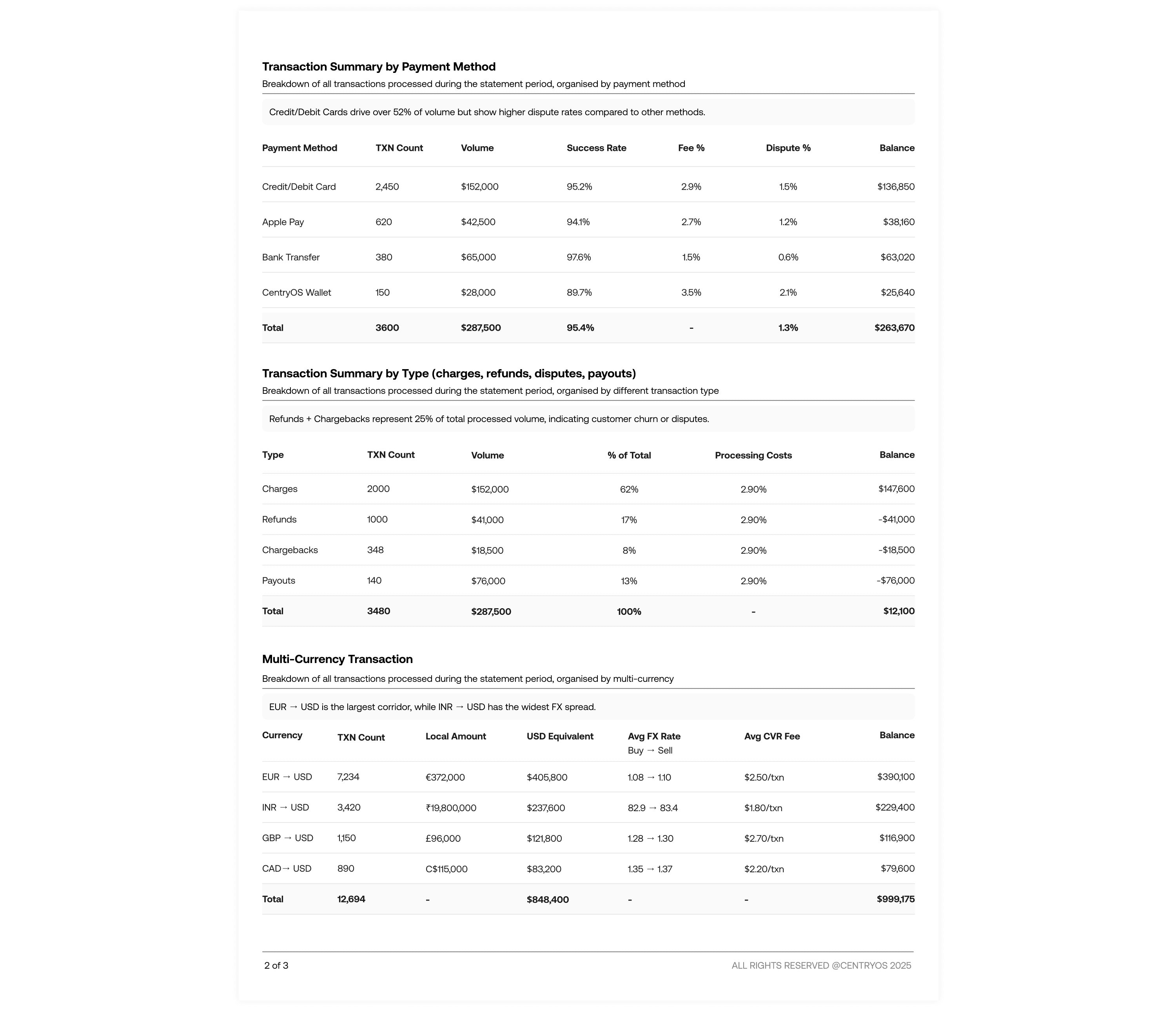 Statements are used for reconciliation, performance checks, and issue detection. If the math feels unclear, merchants will not trust the platform and they’ll open support tickets.